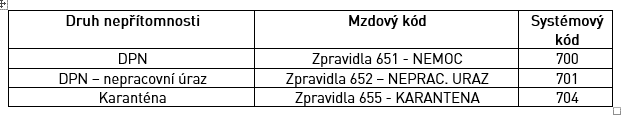 - Na záložku Nemocenské (Karta zaměstnance – Pracovní poměry – Nemocenské) u dočasné pracovní neschopnosti, dočasné pracovní neschopnosti způsobené nepracovním úrazem a karantény.
